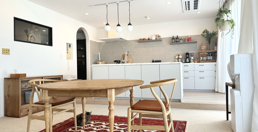 左のカウンターはお持ちの家具や電子レンジのサイズに合わせて造作させていただきました!